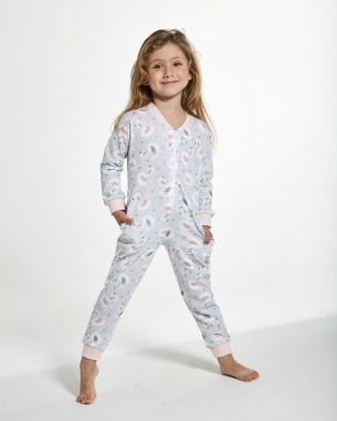 Wygodna koszula nocna dla dziewczynki z długim rękawem i ściągaczem. Koszula nocna została wykonana z wysokiej jakości bawełny, delikatnej dla skóry. Rękawy i dół koszuli zakończone komfortowymi ściągaczami. Na wysokości bioder zastosowano komfortowe kieszenie. Nadruk na dzianinie przedstawia urocze, kolorowe łabędzie.