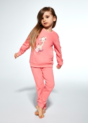 Wygodna piżama dla dziewczynki na jesień i zimę. Piżama ze ściągaczami, długim rękawem i długimi nogawkami będzie idealnym rozwiązaniem podczas chłodnych nocy. Na bluzie i spodniach od piżamy znajdziemy prześliczne owieczki. Dzianina jest miękka w dotyku i delikatna dla skóry.
